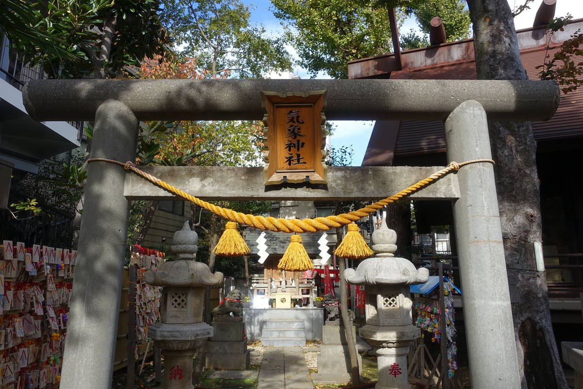 もともとは、現在の高円寺北にあった旧陸軍気象部構内に造営されていたが、終戦により氷川神社に払い下げ移設されたものだということです。現在の社殿は平成15年に改修されたものです。